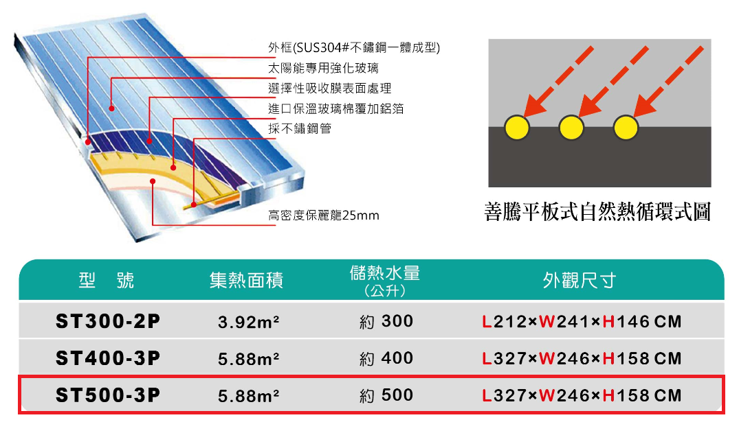 集熱板不結霧設計,高透射率,3mm安全玻璃,集熱效果更快速。