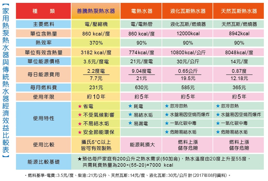 • 省錢:可節省2/3的電熱費支出(電熱水器)或節省1/2的瓦斯費支出(瓦斯熱水器)